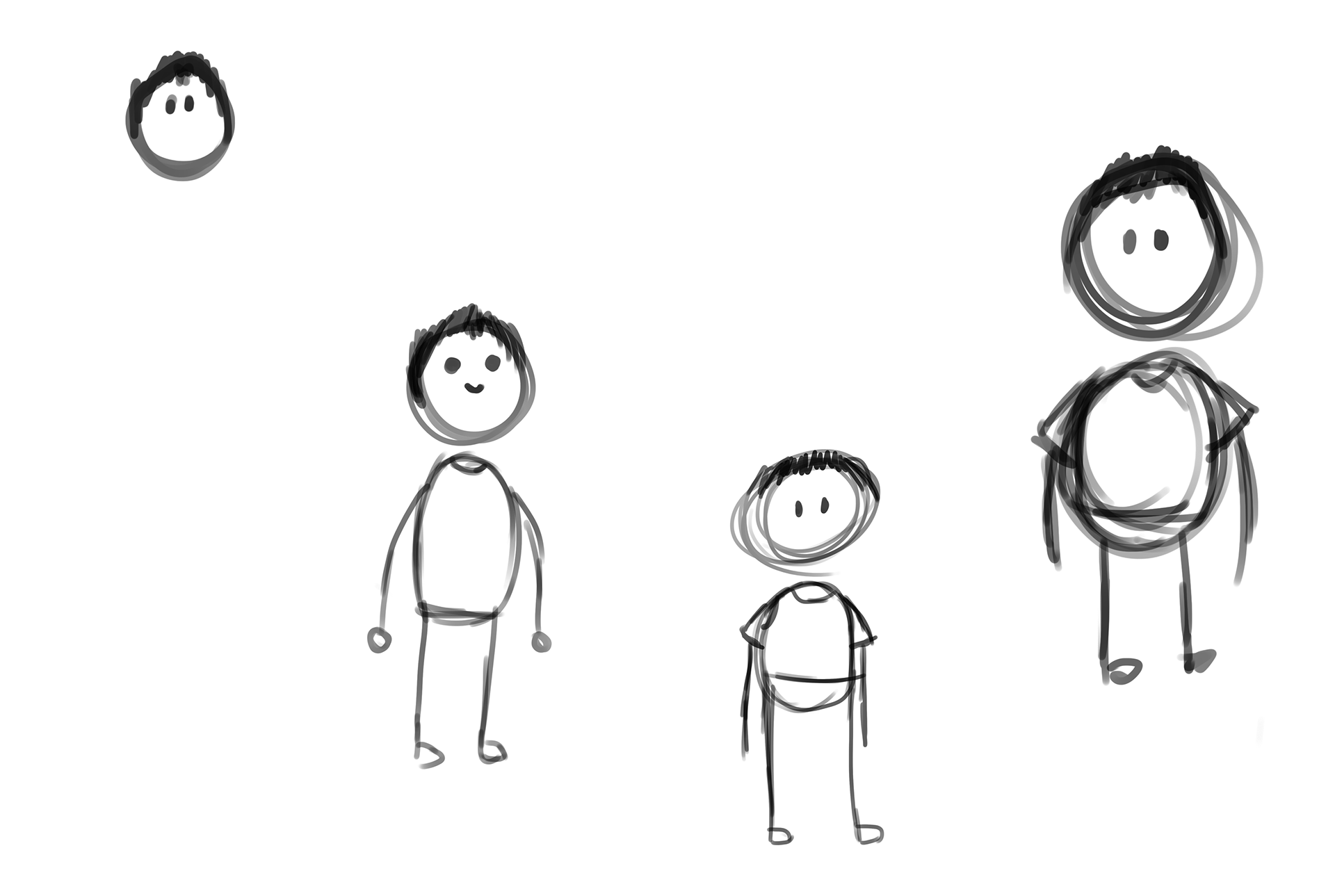 I tried to make some character designs in that style but was never pleased with the look of it. It was difficult to place them in a space. To make each character look unique and just was not happy with the results.