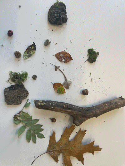 The first thing we did this project is gather photos and items that will be the focus for the project. All the items were acquired in the local woods. here are a few things I pictured that day.